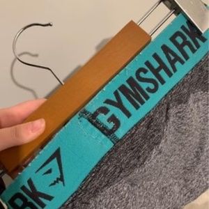 Gymshark grey leggings with flattering pattern around legs and bum. Blue waistband has some piling but in great condition