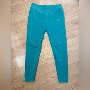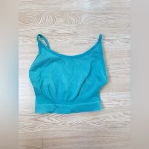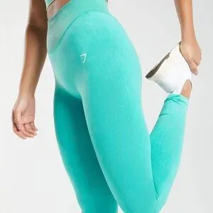 Stylish teal activewear set featuring a sports bra and leggings.