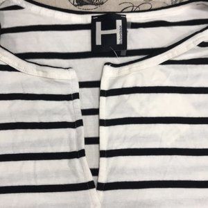 H By Bordeaux Split Neck Striped TOP