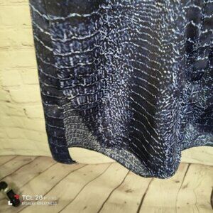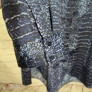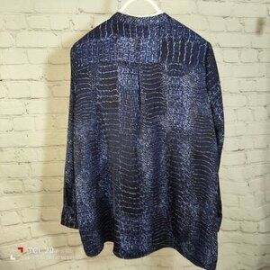 Blue White Split Mandarin Collar H HALSTON Print Tunic Top Blouse