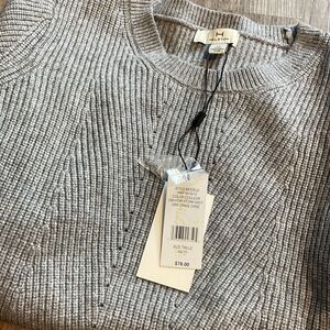 Approximately 23.5in from shoulder to hem Design details: knit design, ribbed trim 51% viscose, 26% polyester, 23% nylon Machine wash