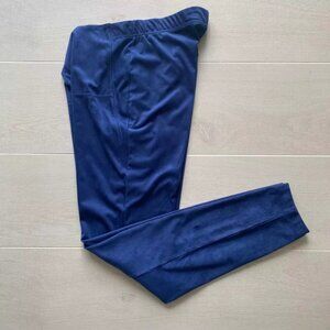 H Halston Leggings Women S Faux Suede Mid Rise Pull On Stretch Blue Skinny *Flaw