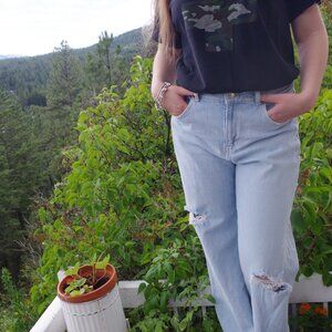 H & M stone washed wide leg women's jeans ,made in Pakistan. They are 99% cotton,15 Elastane ,in good shape .They are a US 10 and eur 42,waist is a 30 inches.