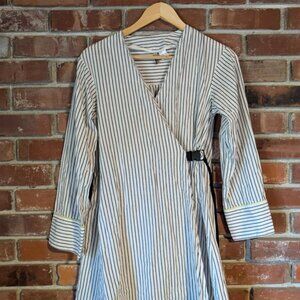 H & M Striped White and Black Spring Wrap-front Dress Size US 2