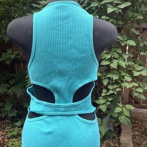 H &M Turquoise Sleeveless Cut Out Back Stretch Maxi Dress