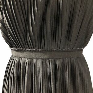 Great dress for any occasion! Great quality, small pleated style design, Sleeveless dress with mesh top and a sweetheart neckline. Pullover style dress, Stretchy material and elastic waist. Dress also has a lining and sits just above the knee. Pending height! Please reach out for measurements.