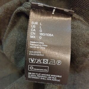 H & M merino wool blend turtleneck sweater size L , in good condition. color is dark green. armpit to armpit is 19.5", length is 28", length of sleeve from shoulder is 29.5"