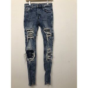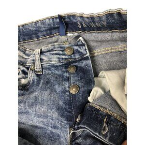 H and M Divided Women's 28x32 Blue Denim Jeans Skinny Leg Distressed Button Fly