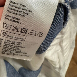 H and M cotton striped short dress tunic vneck blue white airy 3/4 sleeve US8
