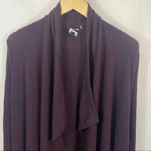 Beautiful AND cozy! From H by Bordeaux, a nice burgundy open front cardigan with mixed rib details that add a textural element to this versatile piece.