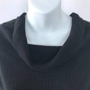 H by Halston little black knit dress, cowl neck & mesh-net sleeves Sz