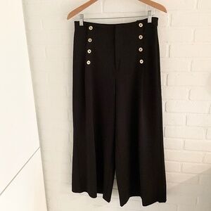 H by Halston Dress Pants Crop wide leg Black High rise Gold buttons Military XS