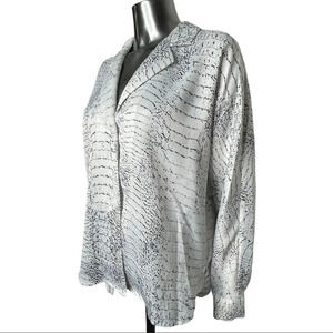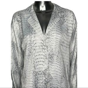 H by Halston long sleeve blouse with notched collar v-neck button front blouse. Snakeskin blouse