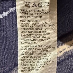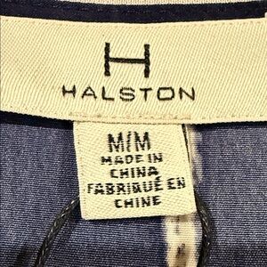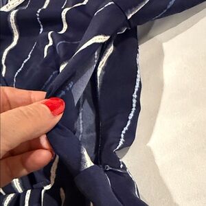 H by Halston navy top with white stripes, cross over bodice. Features a stylish wrap design for a flattering fit. Perfect for Office, Work, Business, Party, Casual. Dress it up with trousers or skirt, or dress it down with jeans or leggings.