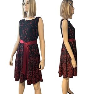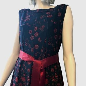π This elegant black and red floral dress with cascading rose bouquets is perfect for any occasion. The vibrant red floral pattern adds a touch of sophistication.n Ideal for eveing event or a stylish day out.