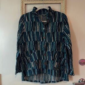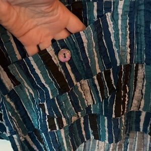 This shirt will be a staple in your closet! A statement style featuring a gorgeous blue print and beautiful details like buttons on the front, as well crinkle fabric and mother of pearls buttons, to take your outfit to the next level! It also has two front pockets π€©
