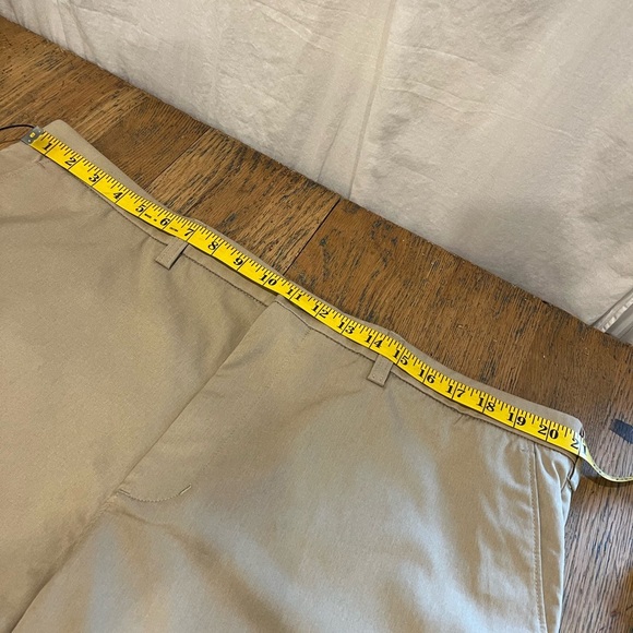 Set of 2 brand new HAGGAR shorts, both with tags. Classic khaki color, straight fit, made with Cool 18® technology for moisture-wicking and comfort. Each features front and back pockets and belt loops. Waist size 42.