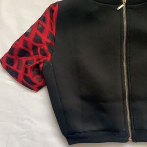 Red and black cropped top with back zipper closure. Cotton/polyester. Great condition.