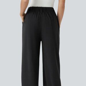 HALARA High Waisted Side Pocket Wide Leg Waffle Work Pants LARGE Black NEW