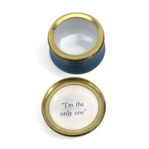 It features a delightful design and the quote "I'm the only one" on the lid's interior.