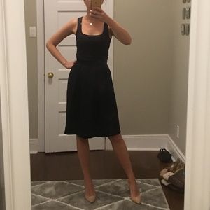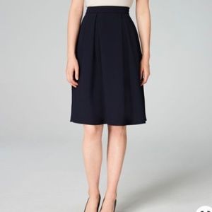 This is a navy blue, knee-length skirt with pockets by German brand HALLHUBER. It also has a hidden zipper on side .