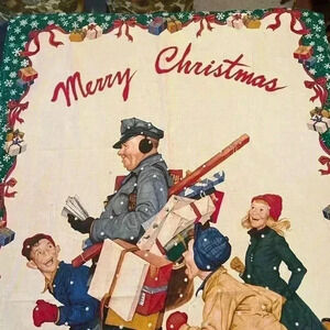 HALLMARK WAMSUTTA NORMAN ROCKWELL MERRY CHRISTMAS wall hanging / couch cover