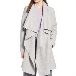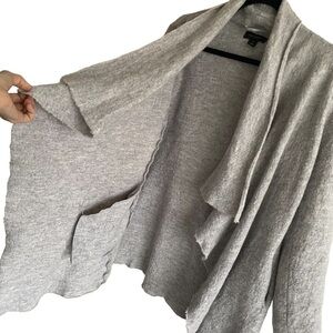 HALOGEN Grey Boiled Wool Blend Draped Fall Winter Open Waterfall Jacket Coat M