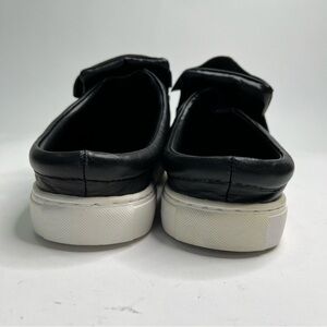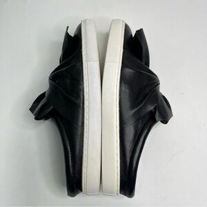 HALOGEN Manny Black Leather Twist Knotted Bow Slip-on White Rubber Sneaker Shoes