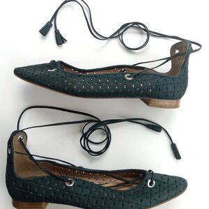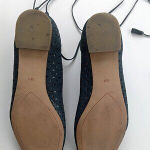 HALOGEN Perforated Suede Lasercut Lace Up Ballet Flats Shoes Size 9.5 Dark Blue