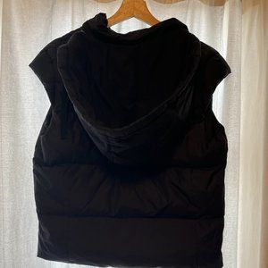 Awesome black puffy vest with cute cap sleeves from Halogen. Removable hood, super warm and stylish.