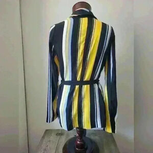 Gorgeous and summery yellow blue and black striped blazer with belt. Perfect condition.