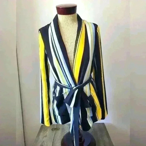 Gorgeous and summery yellow blue and black striped blazer with belt. Perfect condition.