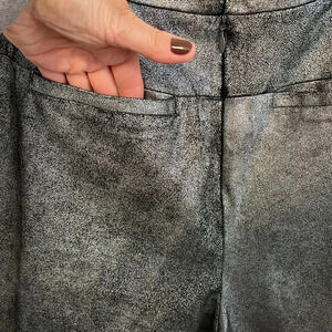 HALSTON HERITAGE Metallic Silver Genuine Leather Shorts, Size 8