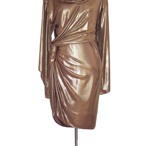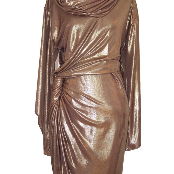 HALSTON HERITAGE Gold Metallic Asymmetric Dress Size 4 New 450$