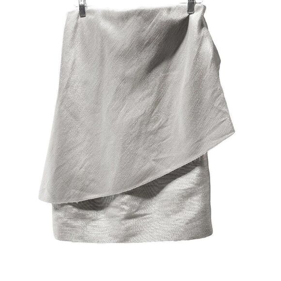 HALSTON HERITAGE Women's Strapless Tiered Drape Jaquard Dress Metallic Silver. HTF!