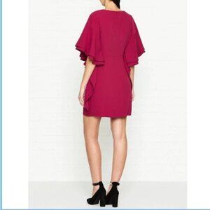 Halston Heritage V-Neck Flounce Sleeve Crepe Dress