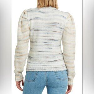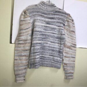 H HALSTON NEW Puff Sleeve Sweater Chunky Knit Striped Mock neck Cozy Wool Blend
