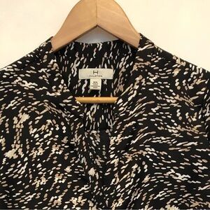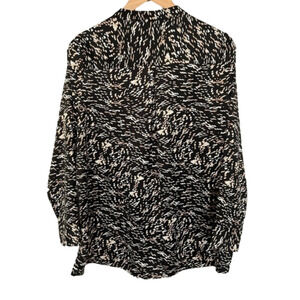 HALSTON oversized blouse long sleeve tunic Button up black abstract print Medium