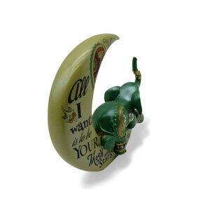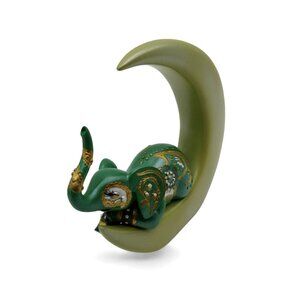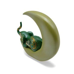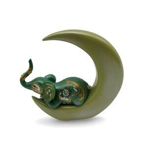 Featuring a green elephant with gold accents resting on a crescent moon, this piece embodies a heartfelt message.