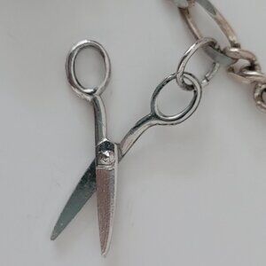Excellent condition with some light wear. Possibly by Helen Andrews New York. One charm is marked STER while 2 links have the 925 mark. About 17grams. Some charms have moving parts like the scissors that open and close!