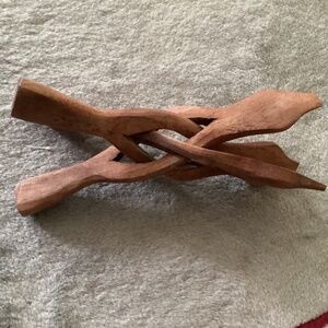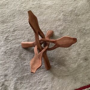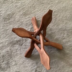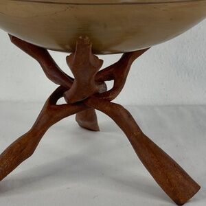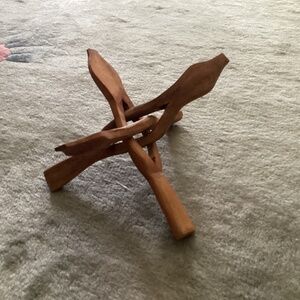 HAND CARVED WOOD COLLAPSIBLE TRIPOD DISPLAY STAND
