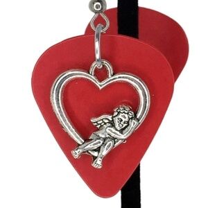 HAND Crafted Drop Earrings Recycled Guitar Pick Cherub Sleeping in Heart New