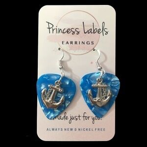 HAND Crafted Drop Earrings Repurposed Guitar Picks Anchors Sail Away