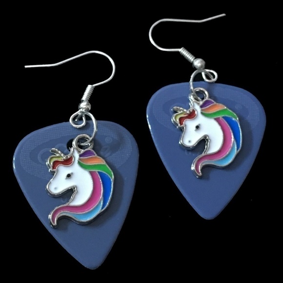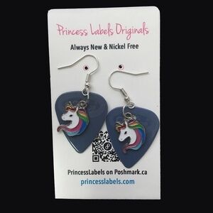 HAND Crafted Earring Repurposed Guitar Picks Unicorn Happy Pride Rainbow