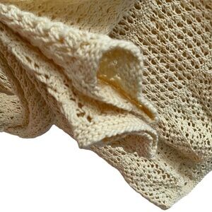 HAND KNIT Crochet Cotton Long Sleeve Sweater Yellow S