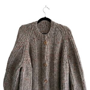 HAND KNIT Wool Blend Long Sleeve Button Front Cardigan Sweater Coat Jacket