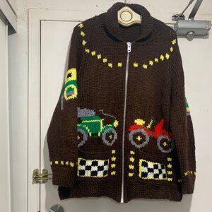 HAND KNITTED GRAPHIC SWEATER CARDIGANS SIZE XL