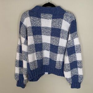 HAND Knit Blue Buffalo Plaid Wool Sweater
