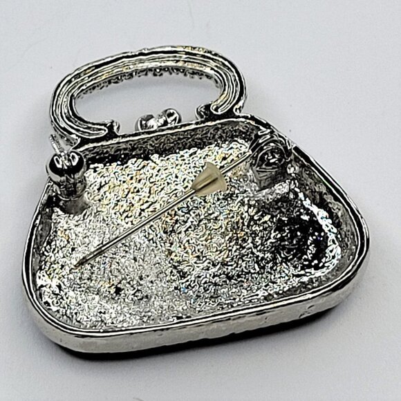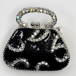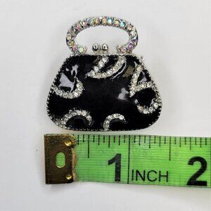 Cute Shiny Black enamel with Crystals Handbag Pin Brooch