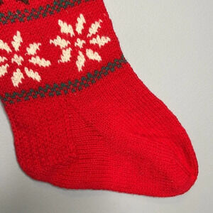 HANDKNIT Wool Christmas Stocking Red Gingerbread Men Snowflakes Large Capacity